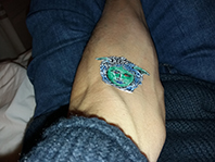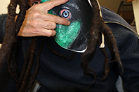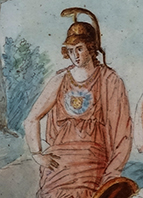 Medusa angeheftet mit geronnenen Blut der Unglückseligen an Athenes Aegis.