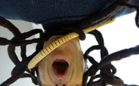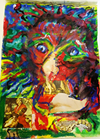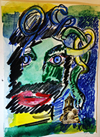 aufgerissenem Mund und kehllosem Schrei. Galliger Atem macht sich in den