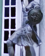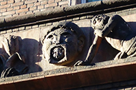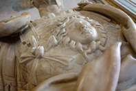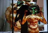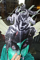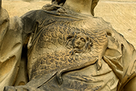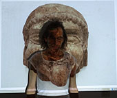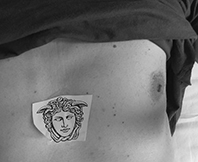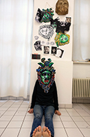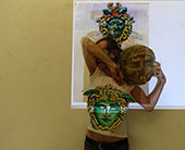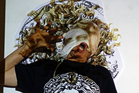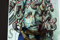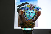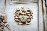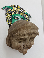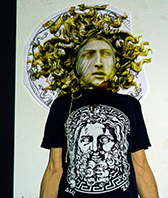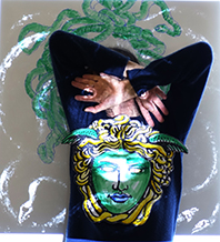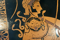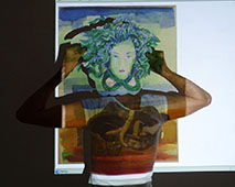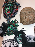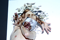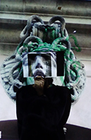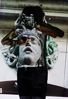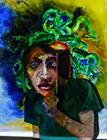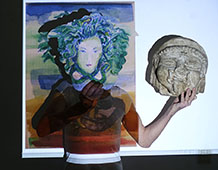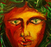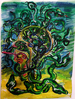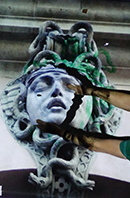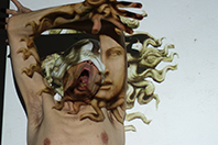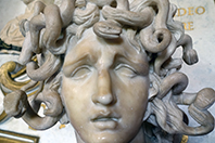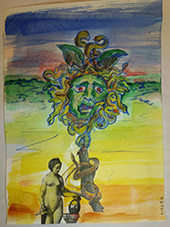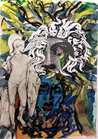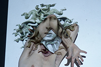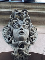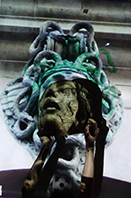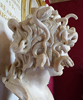 scheinbar verwachsen miteinander. In der Mitte Medusa verflucht