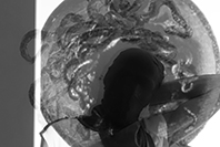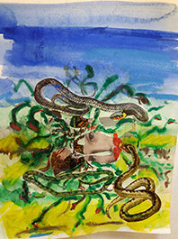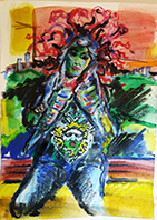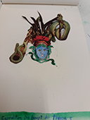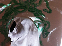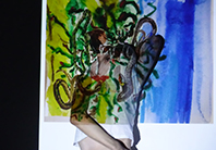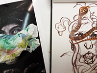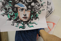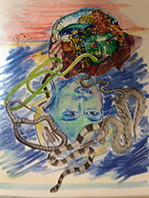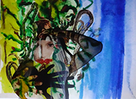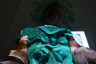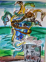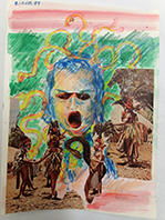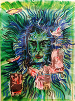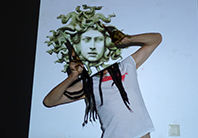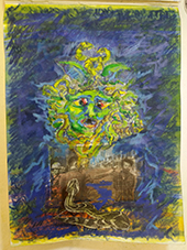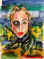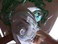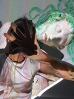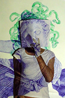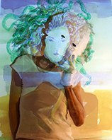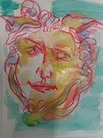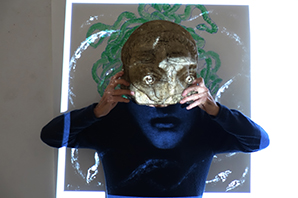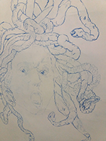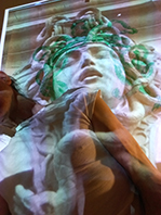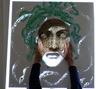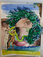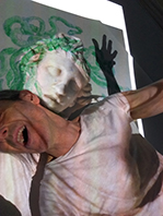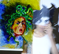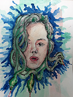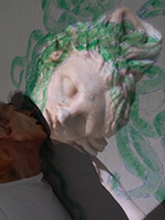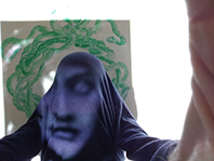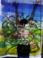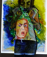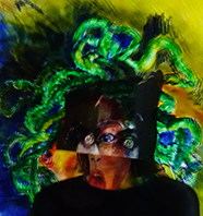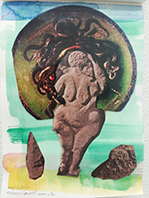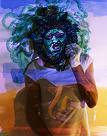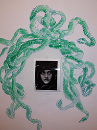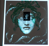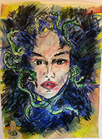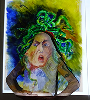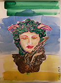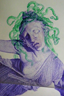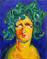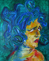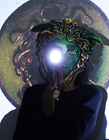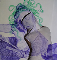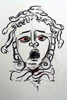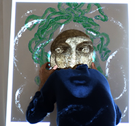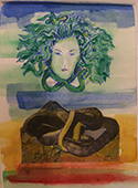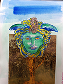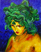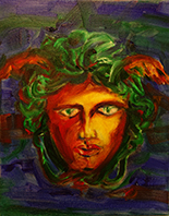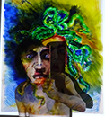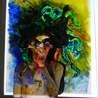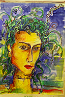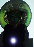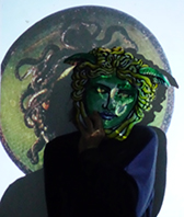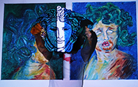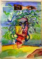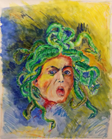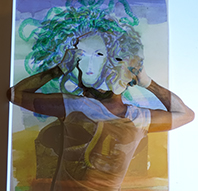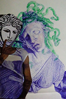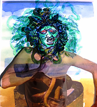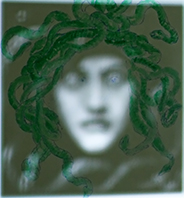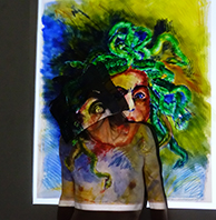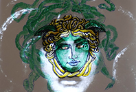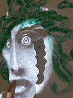 Er steht ausgesetzt, unmittelbar im Atem der Gorgonen. Noch sind Medusas Augenlider fest verschlossen, ihr Blick tief in den inwendigen Abgründen der Verzweiflung verwachsen mit dem hoffnungslosen Wunsch auf Erlösung. Nun winden sich die ersten Schlangen aus dem Schlaf der Unterwelt am Haupt der Medusa. Im Moment der tödlichen Konfrontation wird der Reisende durch den unumkehrbaren Sog, der geistigen Gravitationskraft der Erwachenden, einverleibt. Im Moment des kalten Schreckens erstarrt die Zeit in unmessbaren Zeitquanten, die den Reisenden aus der Starre ins Kontinuum der Zeit verspiegeln. Nun erheben sich die Gorgonen zu den schreckenerregenden Wesen ihres Mythos und die sterbliche, grauenhafteste Medusa ergibt sich ihrem Schicksal.