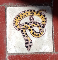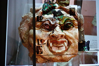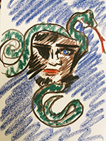 menschlicher Natur. Das Ungeheuer windet sich mit Schlangen umwundenen Schädel,