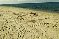 zusammengekauerten Gestalten im tiefen Schlaf, schwer atmend am felsigen Ufer