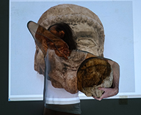 Schädeldecke des Gottes. Unmittelbar steht die männliche Kopfgeborene Athene