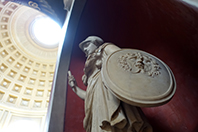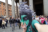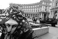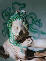 Der Reisende kommt wieder zu Sinnen und weicht dem Blickfeld der Todbringenden aus. Der Mythos vereinigt die Gorgonenschwestern zur Dreifaltigkeit des Schreckens und verortet sie zum weltumfließenden Strom Okeanos an der Grenze zum Totenreich. Der Reisende macht sich eiligst auf nach Rom und erhofft hier an den steinernen, antiken Stätten in die Abgründe der tiefsten Schichtung des Mythos‘ zu blicken.