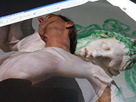 den entmenschlichten Überresten, hocken die drei Gorgonen dicht an dicht