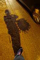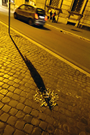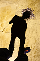 Vom Restlicht des schwarzen, ruhig dahinziehenden Stroms werden ihm Schatten von