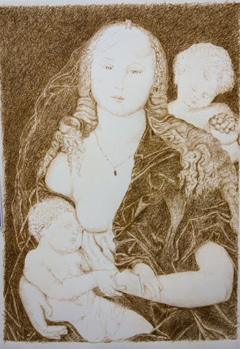 Zeichnung nach v. Hans Baldung gen. Grien - Madonna mit Kind und Engel - in Originalgröße